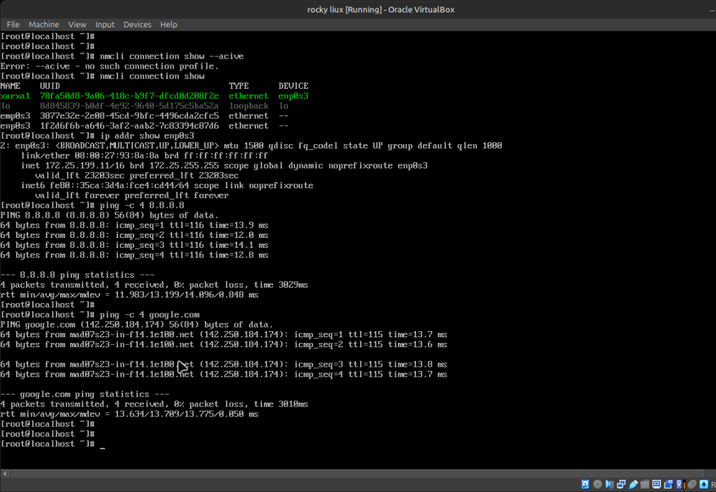 Finalment vaig verificar que tenia IP assignada (172.25.199.11/16) i que podia fer ping a 8.8.8.8 i a google.com.
