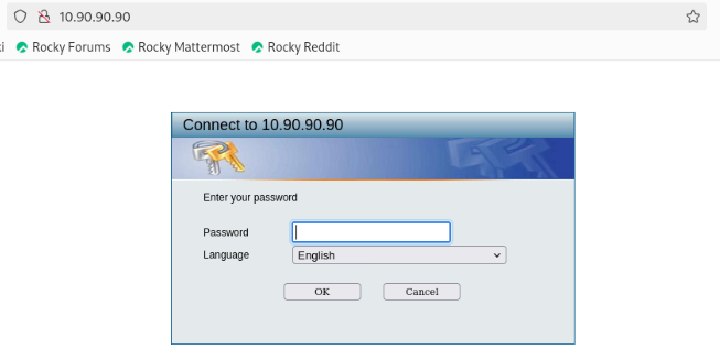 http://10.90.90.90vaig entrar al login page.La contrasenya per defecte és: