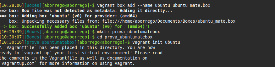 cd prova_ubuntu Inicialitzar Vagrant amb la box desitjada: