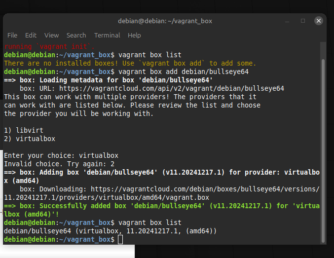 vagrant box add debian/bullseye64 Després es pot comprovar amb: