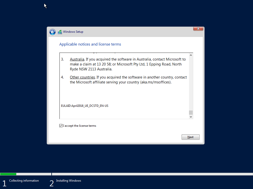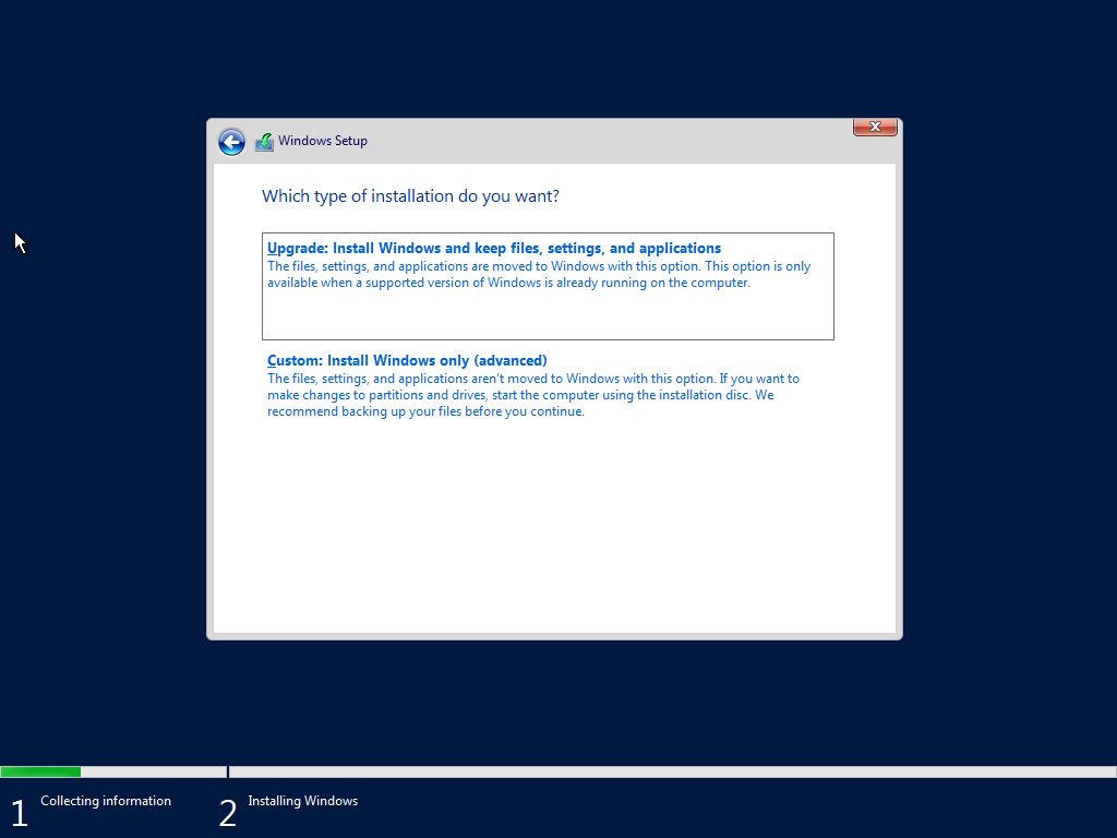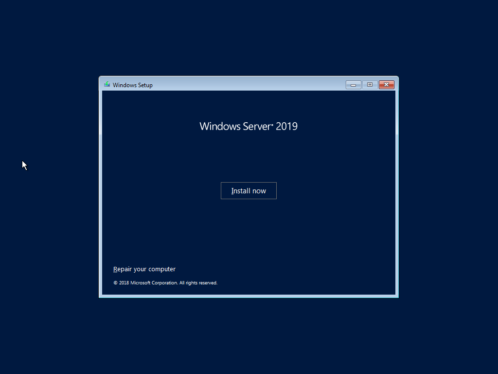Inicia la MV. Apareixerà la pantalla inicial de Windows Setup.