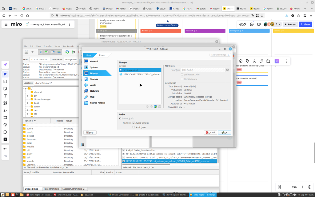 Afegeix (o selecciona) el controladora IDE/SATA i carrega la ISO descarregada (la vas treure amb FileZilla a la carpeta local