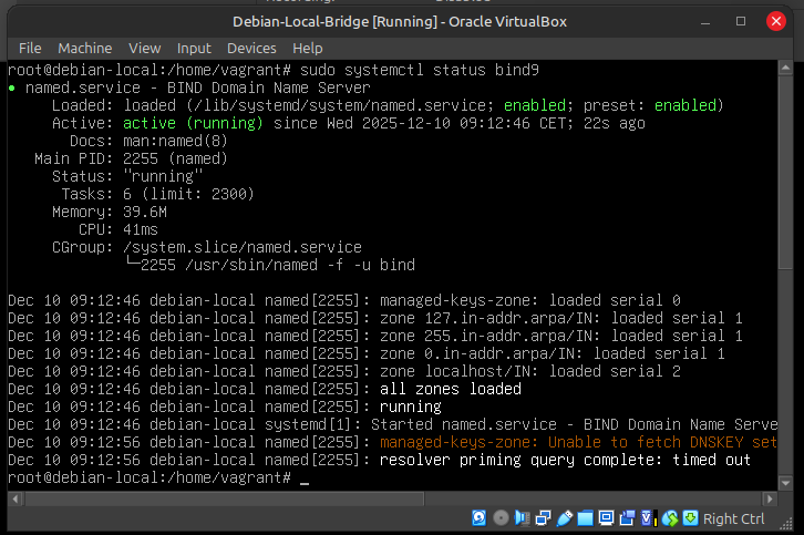 systemctl status bind9 | grep "Active: active (running)" && echo "✅ Servei BIND actiu"