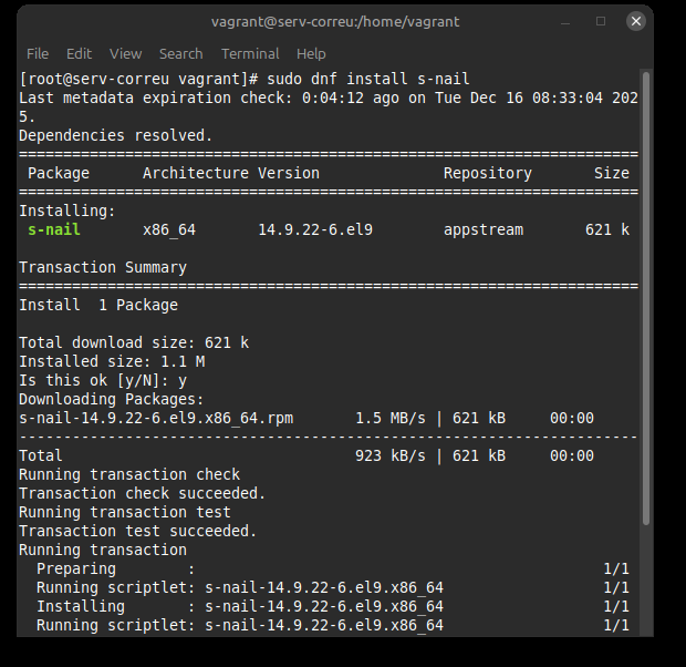 A Rocky Linux (versió 8 o 9), el paquet clàssic mailx ha estat substituït per s-nail (és el mateix funcionalment, només canvia el nom del comandament: mail segueix funcionant).