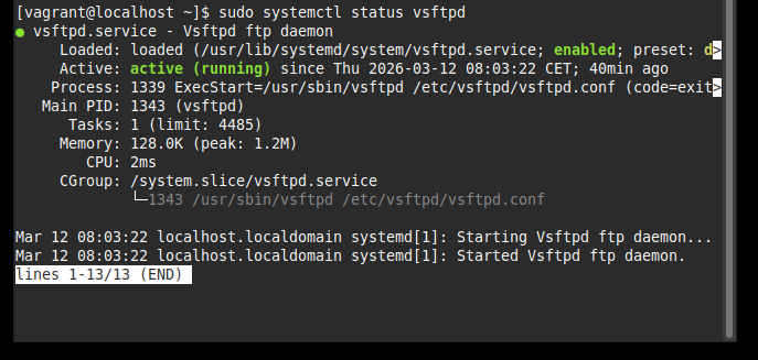 Primer comprovem,  vsftpd està instal·lat i funcionant.