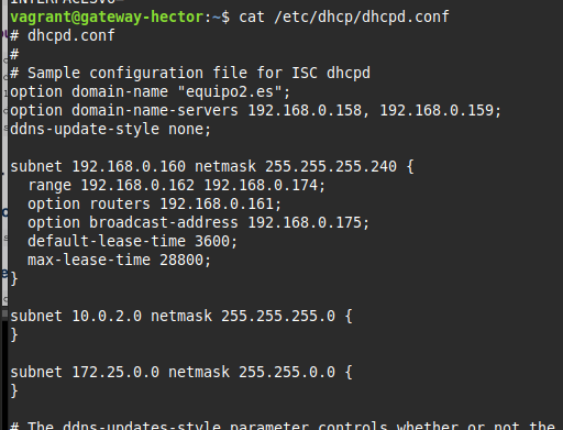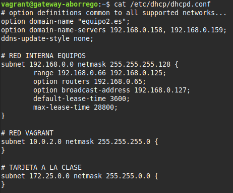 option domain-name "equipo2.es"; option domain-name-servers 192.168.0.158, 192.168.0.159;
